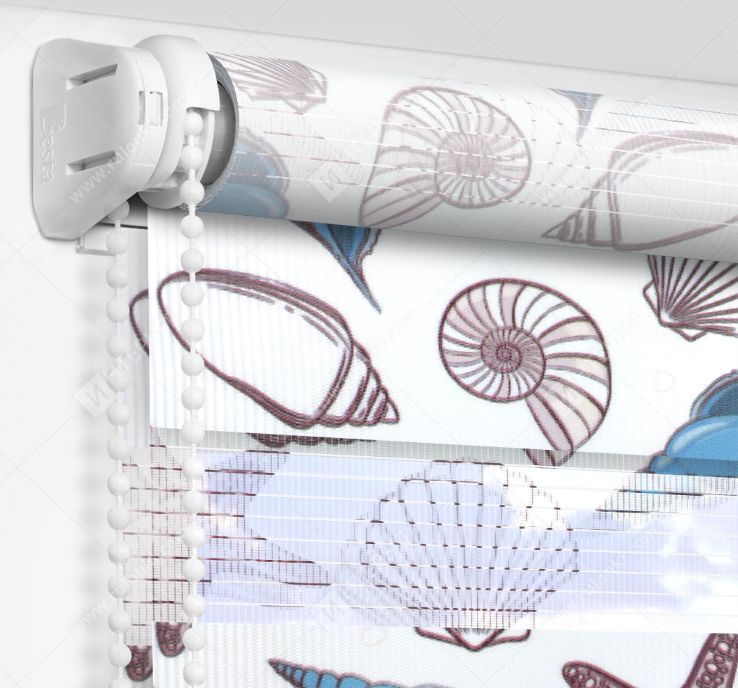 Рулонные шторы Зебра работают следующим образом: полоски ткани смещаются так, чтобы совпали светлые или темные слои, образуя, плотное или более прозрачное полотно. Так обеспечивается ночной или дневной режим затемнения. Также можно поднять шторное полотно полностью, открывая окно. По умолчанию - цвет фурнитуры белый.