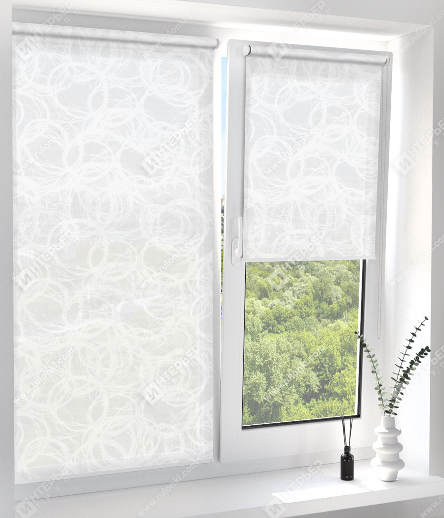 Комплектация: вал с тканью и цепью управления, фиксатор цепи и системы крепления - без сверления (на двусторонний скотч) или на саморезы. По умолчанию - цвет фурнитуры белый.