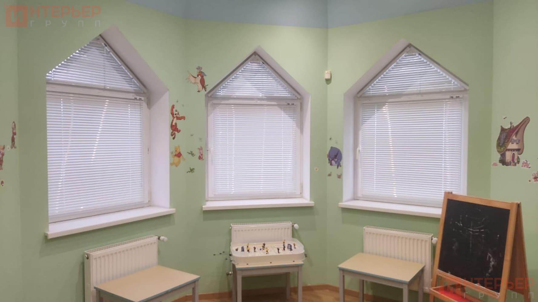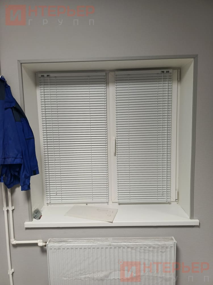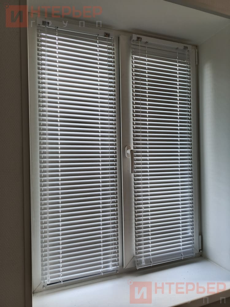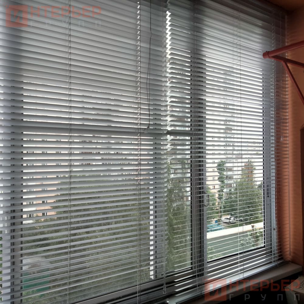 Горизонтальные алюминиевые жалюзи на пластиковые окна – цвет светло-голубой